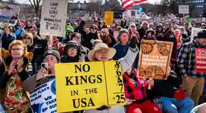 Толпы людей собрались как в больших, так и в малых городах. Митинги «Нет королям» начинаются в Бостоне, штат Массачусетс, Нэшвилле, штат Теннесси, и Хьюстоне, штат Техас.
